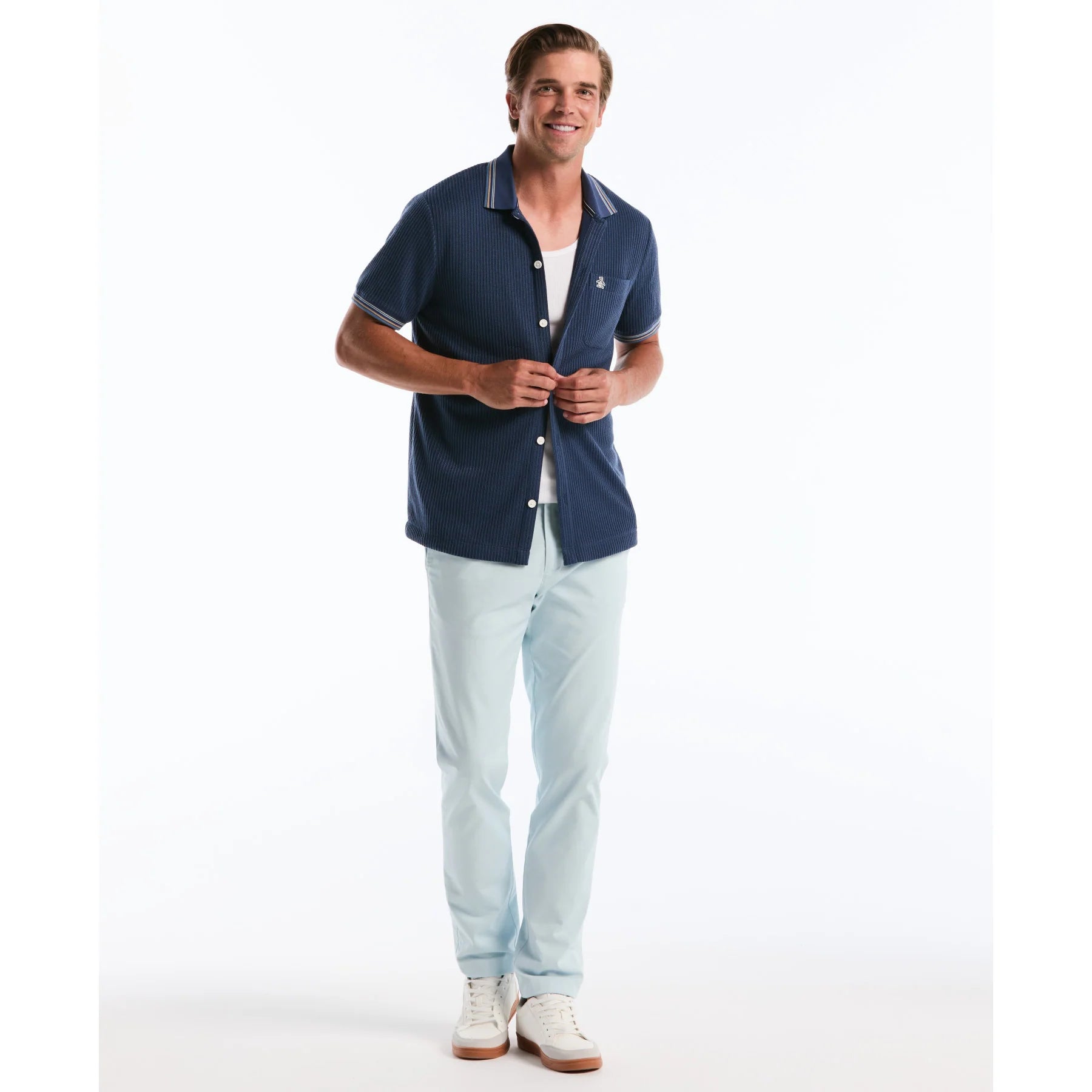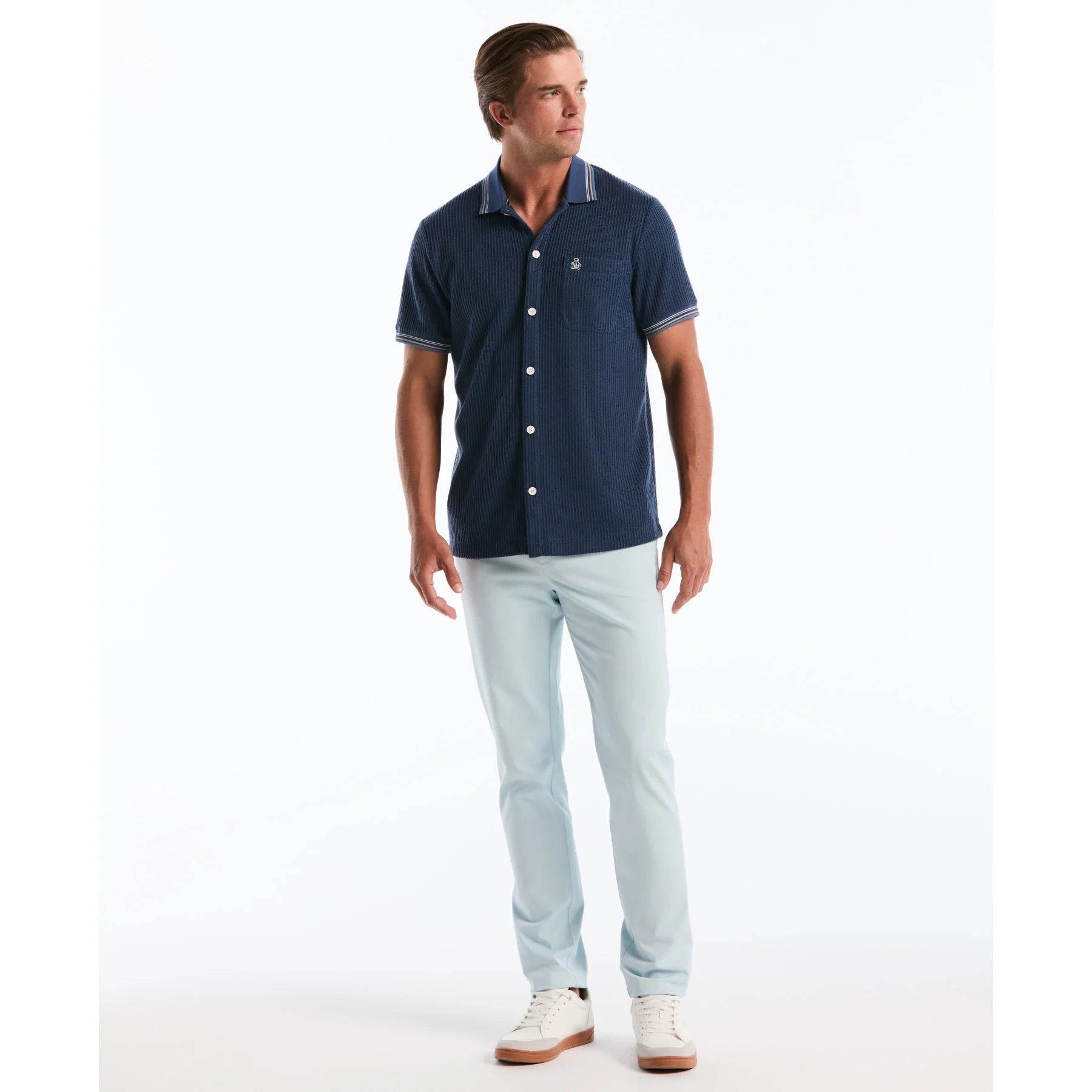Penguin Vertical Jacquard Button Front Polo OPKS2604 // SARGASSO SEA