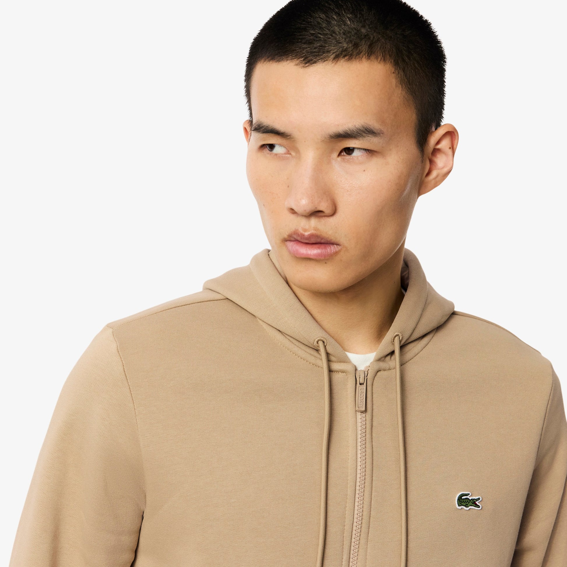 Lacoste Zip-Up Fleece Hoodie // BEIGE